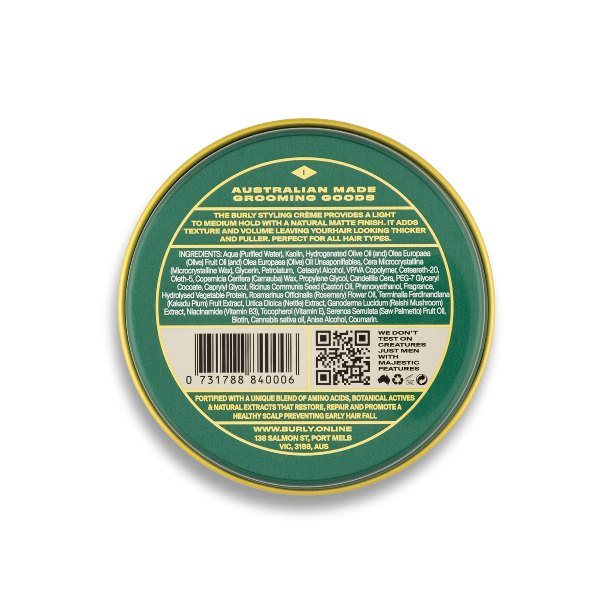 The BURLY Crème is designed for all hair types. It provides a light to medium hold, excellent pliability with a natural matte finish.
